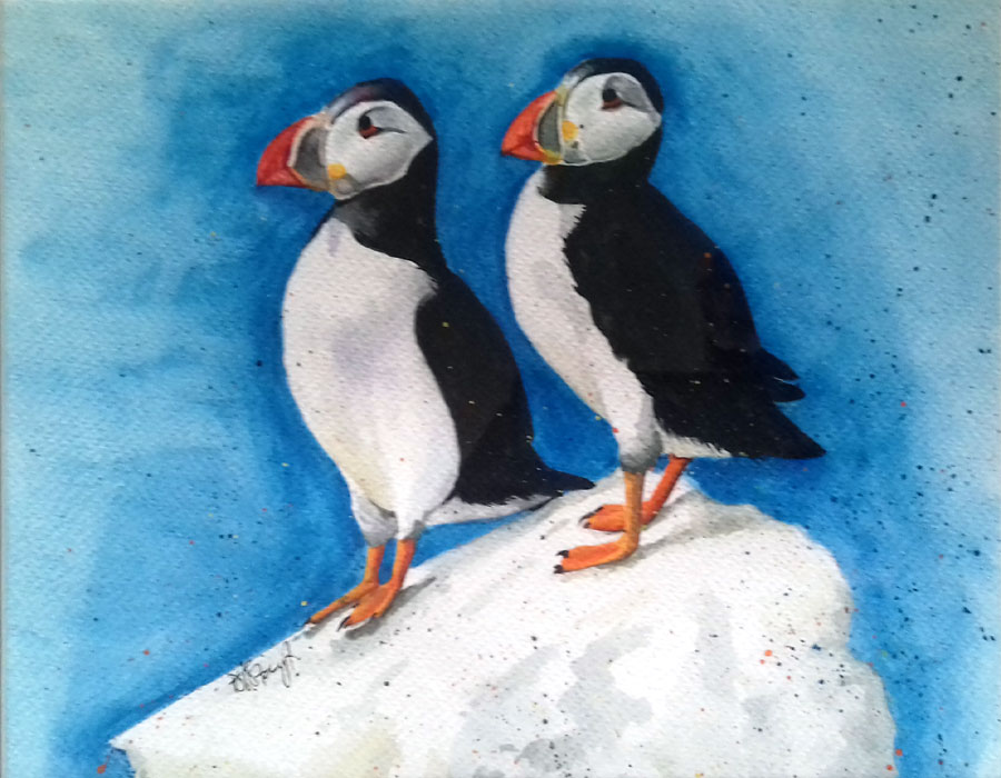 painting. I have dabbled in many different media over the years but I now work mostly in water-based media, particularly solid and powdered inks. I like these for their colour vibrancy and translucence. They are also colourfast and permanent once dry - a challenge as I need to work fast so I can achieve watercolour effects. My favourite subjects are animals and birds.